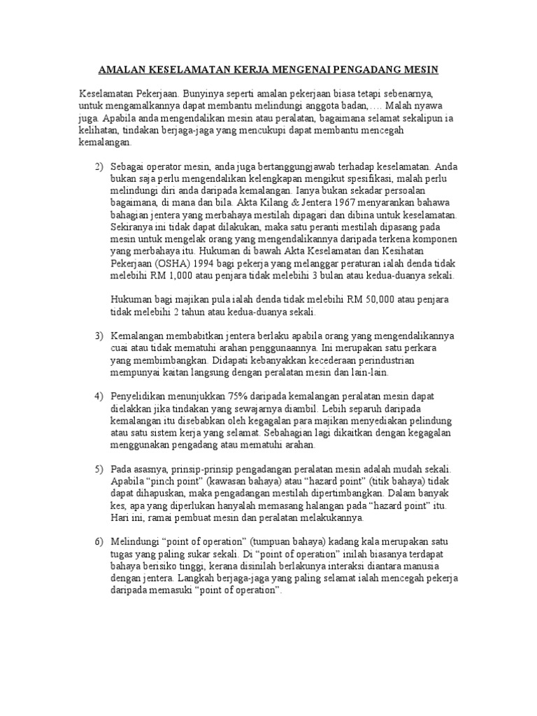 Amalan Keselamatan Kerja Mengenai Pengadang Mesin Pdf