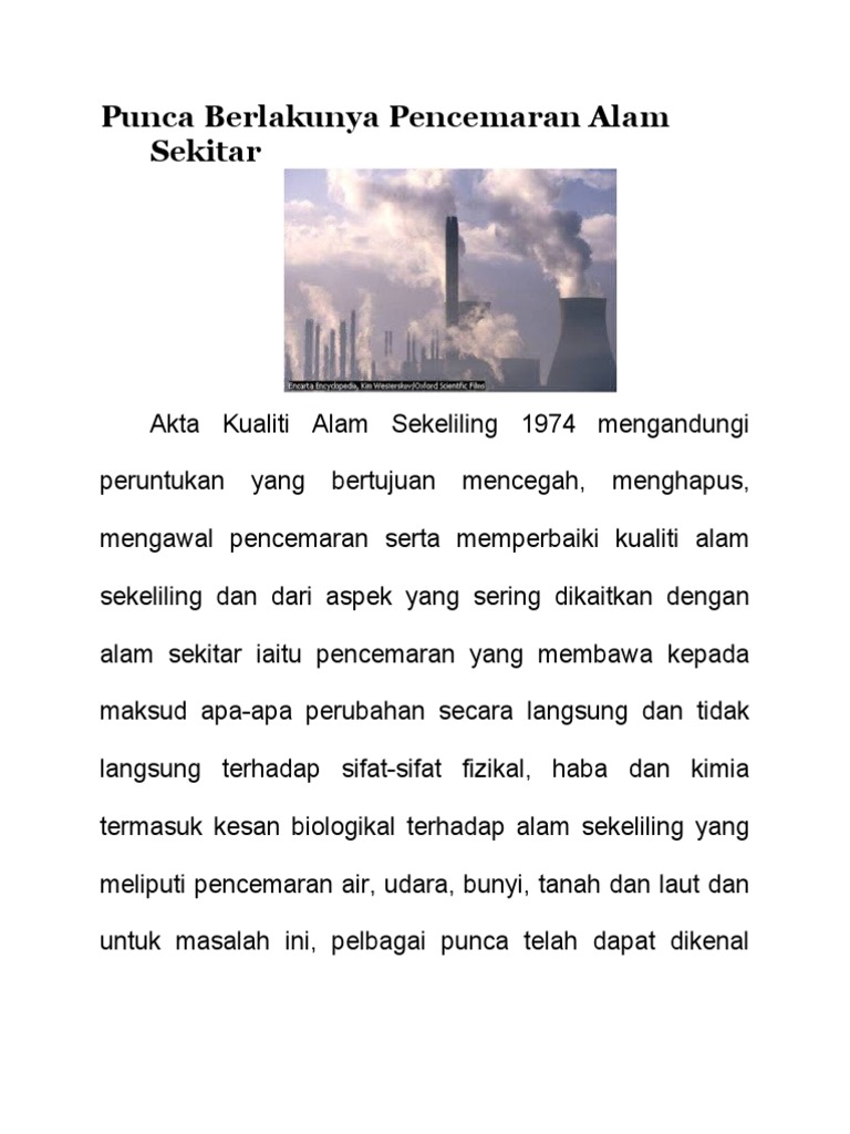 Antara punca berlakunya kejadian jerebu ialah-. Namun setelah mengecapi kemajuan pembangunan dan teknologi sungai semakin dilupakan malah dicemari tanpa sebarang rasa serba salah. Dasar Alam Sekitar Malaysia yang bersifat pragmatik dan bertujuan untuk mengurangkan.